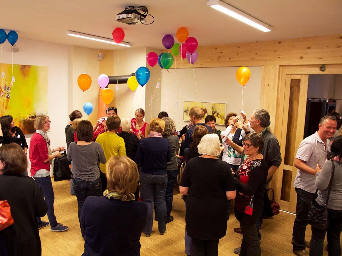 Lachyoga, anschließend Buffet, Feiern, Tanzen, …